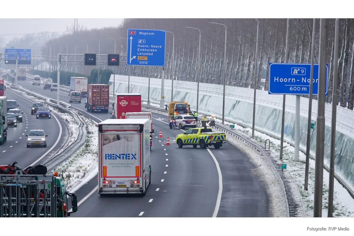 BERKHOUT - Twee voertuigen zijn maandag aan het einde van de morgen in botsing gekomen op de A7 ter hoogte van Berkhout. Het ongeval gebeurde kort voor 11:30 in noordelijke richting, vlak voor de afslag naar de N307.