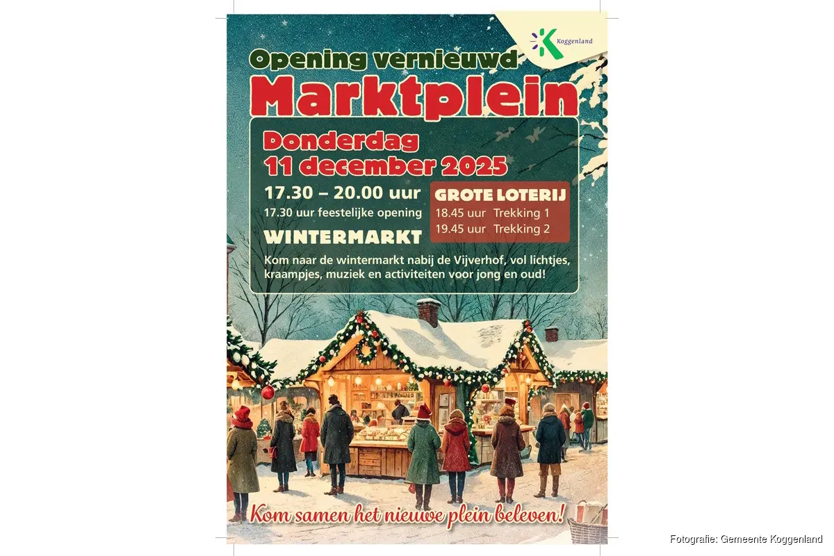 Na maanden van werkzaamheden schittert het plein in een nieuw jasje en dat vieren we graag samen met alle inwoners en ondernemers van Koggenland! Van 17.30 tot 20.00 uur verandert het plein in een sfeervolle wintermarkt vol gezelligheid, muziek en licht.
