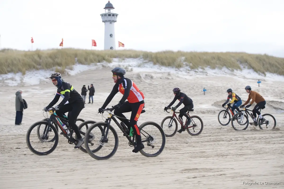 Spektakel De organisatie presenteerde een vernieuwd parcours, dat direct voor spektakel zorgde. Al bij de eerste afslag op het strand werden de renners op de proef gesteld. Onder luid applaus van het aanwezige publiek barstte de strijd bij de mannen los. Direct na de keerlus volgden de eerste aanvallen. Jules de Cock toonde zich vanaf het begin nadrukkelijk. De Zeeuw had zijn tactiek minutieus voorbereid en verscheen aan de start in een snelpak met tijdrithelm. Hij koos resoluut voor de aanval en nam meteen de leiding. De Cock trotseerde alle drie de strandafgangen solo. Na afloop toonde hij zich verbaasd dat zijn vijf achtervolgers, Stijn Appel, Rick van Breda, Pepijn Veenings, Jonas Rickaert en Jasper Dejaegher, niet eerder kwamen aansluiten. De beslissing viel bij de laatste strandafgang in Castricum aan Zee. Jonas Rickaert, tot dan toe ijzersterk ogend, kwam ten val en verloor de aansluiting. Pepijn Veenings profiteerde optimaal: hij sprong met fiets en al over de strobalen, nam direct een strakke tijdrithouding aan en sloeg een beslissend gat. Teamgenoot Rick van Breda controleerde daarachter het tempo, waardoor Veenings onbedreigd solo de boulevard van Egmond aan Zee op reed. De renner van Team Beukers finishte in 00:59:59. Stijn Appel legde beslag op de tweede plaats in 01:00:26. Van Breda completeerde het podium in 01:00:38, wat voor Team Beukers zorgde voor de kers op de taart. Veenings: “Dit was vooraf absoluut niet het plan, maar ik ben hier natuurlijk wel verschrikkelijk blij mee. Het plan was te pieken tijdens het NK Strandrace, maar dit is ongekend mooi.” Bij de vrouwen bleef het lang spannend. Een grote groep bleef samen en reed voortdurend kop over kop. Door het hoge en gelijkmatige niveau was vooraf geen duidelijke favoriet aan te wijzen. Uiteindelijk draaide de complete kopgroep gezamenlijk de boulevard op. In een uiterst spannende sprint trok Nina Kessler aan het langste eind. Zij won in 01:12:20, voor Meis Poland en Silje Bader, die respectievelijk tweede en derde werden. De 25e editie van de GP Groot Egmond-Pier-Egmond bewees opnieuw zijn reputatie als een van de meest spectaculaire strandwedstrijden van Nederland, met sportieve strijd, extreme omstandigheden en veel publiek langs het parcours. Egmond weekend Naast de GP Groot Egmond-Pier-Egmond organiseert Le Champion morgen de 51e editie van de Egmond Halve Marathon. Deze is uitverkocht met 18.500 deelnemers. Inschrijven De volgende editie van de GP Groot Egmond-Pier-Egmond zal plaatsvinden op zaterdag 9 januari 2027. Inschrijven is mogelijk vanaf medio augustus. |